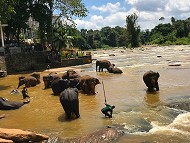 ☆ピンナワラでは、多くの象が川で水浴びする光景や象の孤児院も訪れます